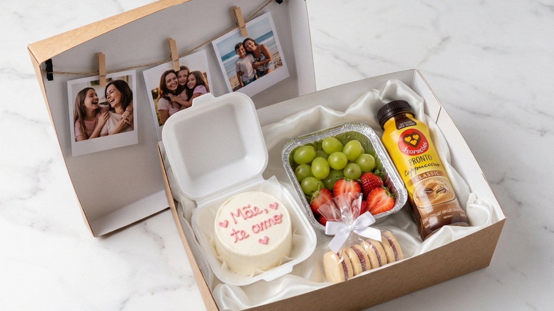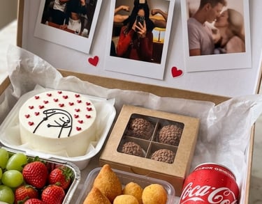 ✨A caixa vem com bento cake, doces, frutas, biscoitos, bebida e decoração.✨